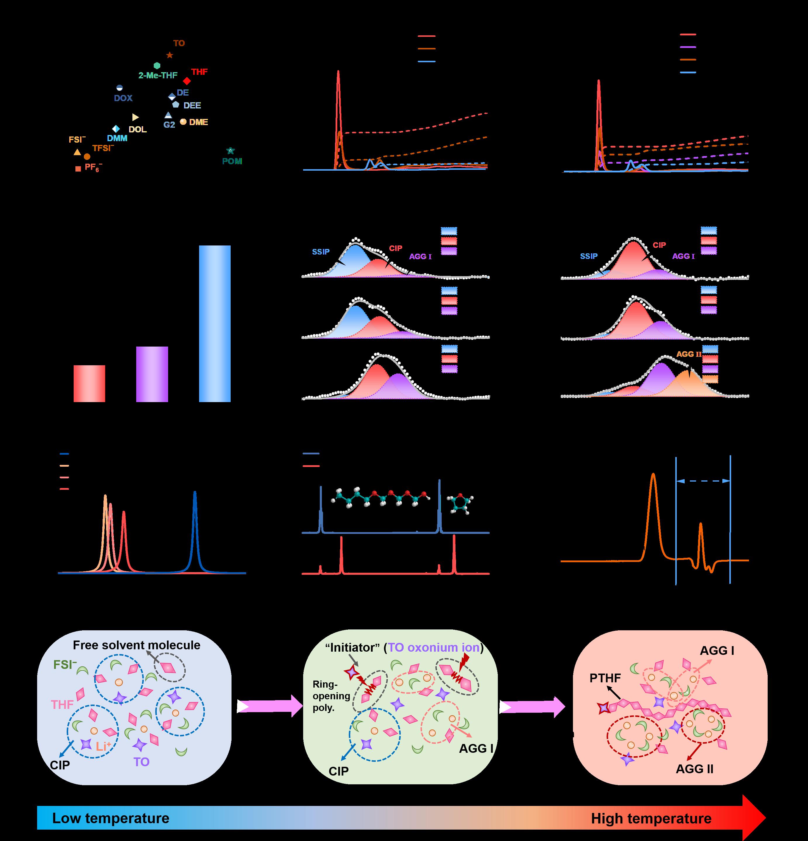 近日,我校伟德体育官网闵宇霖教授团队研究开发了一种基于醚基的热响应电解质,其Li+溶剂化结构随温度变化而改变,有助于形成多晶电极/电解质界面,从而实现锂金属电池在宽温域(−60 ~ 60oC)下的安全稳定运行。相关成果以“Thermoresponsive ether based electrolyte for wide temperature operating lithium metal batteries”为题发表在Nature子刊《自然·通讯》(Nature Communications DOI : 10.1038/s41467-025-60524-8)上,标志着我校在国际储能电池材料与安全领域占有一席之地。论文第一作者为我校伟德体育官网2024届硕士研究生顾榕,目前在同济大学攻读博士学位,徐巾婷博士、朱晟副教授、时鹏辉教授和闵宇霖教授为通讯作者,上海电力大学为论文唯一署名单位。