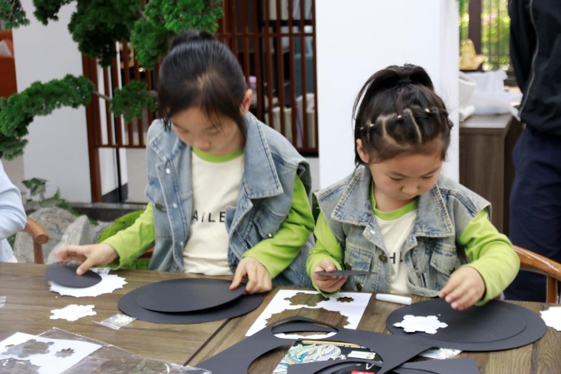 穿越时光脉络,细品文化风华。活动伊始,志愿者为孩子们进行现场讲解与示范。介绍了“藻井”的历史渊源、文化内涵及基本技法,并通过生动的演示视频展示了美学与建筑学相碰撞的繁复技术。孩子们认真聆听,跃跃欲试。通过视频展示和实物讲解,志愿者讲道“就如《梦溪笔谈》中所述的别名‘绮井’‘覆海’一般,当置身于一处古代殿堂,我们抬头仰望藻井,便可看见悠久历史中的气象万千,感受中华美学的理念与韵味。”