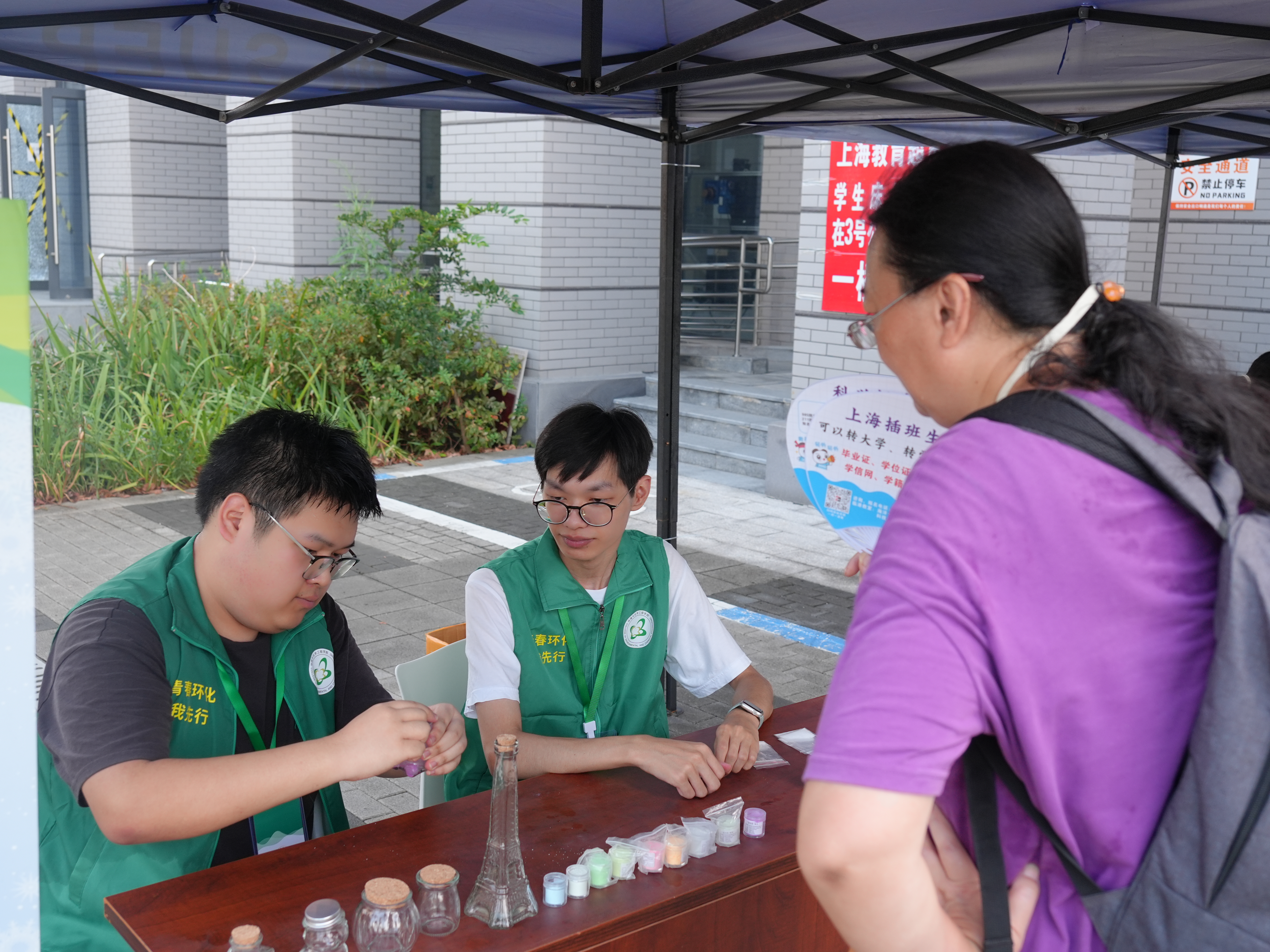 为让新生直观感受专业魅力,学院在迎新区设置了特色互动区。“植物滴胶”摊位前,新生们亲手将缤纷花瓣定格于剔透胶体,感受化学赋予自然的永恒之美;“天气瓶实验”则以其晶体随气象变幻的神奇魔力,引发了阵阵惊叹与浓厚兴趣。这些寓教于乐的互动体验,不仅生动诠释了化学与生活的紧密联结,更在新生踏入环化的第一刻,便成功“相约”他们对科学的无限好奇与探索欲望,为专业学习埋下了兴趣的种子。