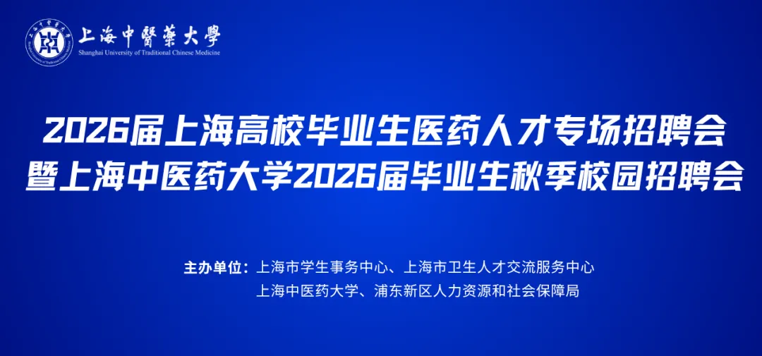 金秋时节,正是逐梦求职好时光!2026届上海高校毕业生医药人才专场招聘会暨上海中医药大学2026届毕业生秋季校园招聘会即将开启,我们诚挚邀请各位同学携梦而来,与众多优质用人单位面对面交流,开启职业生涯的崭新篇章!