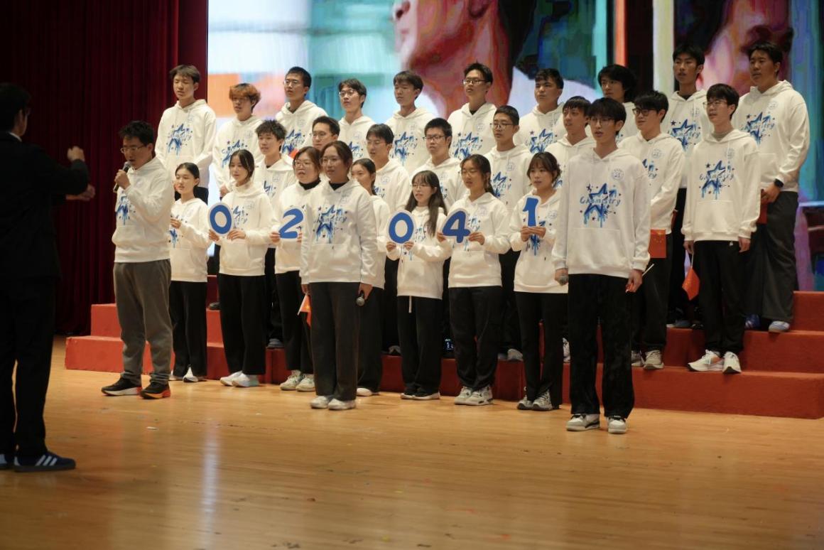 比赛现场气氛热烈,高潮迭起。各参赛班级依次登场,用饱满的热情和嘹亮的歌声展现了环化学子的青春风采与爱国担当。有的班级创新表演形式,通过深情的朗诵、领唱传递情感;有的班级则巧妙融入情景演绎,以戏剧化的表现形式契合歌曲主题,为传统合唱注入新鲜元素。《错位时空》以悠扬旋律展开跨越时空的青春对话,大一新生用清澈嗓音诉说着对先辈的敬意;《没有共产党就没有新中国》唱出了历史回响与人民心声,学生们整齐划一的手势和激昂的歌声震撼全场。《光辉岁月》致敬在新能源领域坚守初心的奋斗精神,大二学子用充满力量的演唱展现了对专业的热爱;《追梦赤子心》则完美展现了化工学子无畏挑战的赤子情怀,舞台上情景再现了实验研究的场景,独具学科特色。