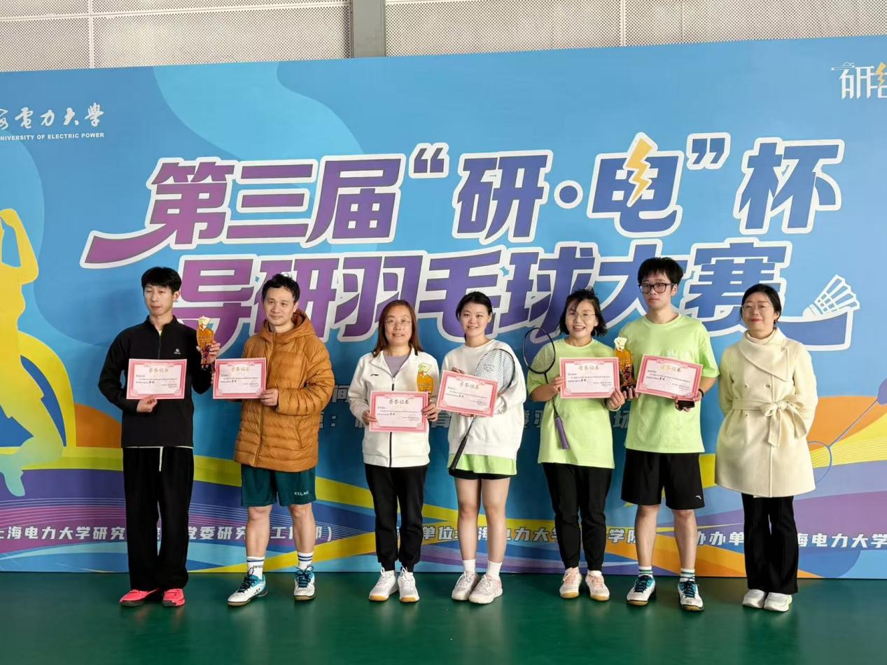 11月28日下午,我校“研·电”杯导研羽毛球比赛在临港校区体育馆二楼羽毛球场举行。经过学院前期选拔,陈炫颖和马天麟、辛志玲和黄玥、赖春艳和龚保龙三对师生组合脱颖而出,代表学院出战校赛,与各学院师生同场竞技。经过多轮激烈角逐,我院女子双打组合发挥出色,一路过关斩将,最终荣获季军,展现了我院师生卓越的竞技水平和昂扬的精神风貌。